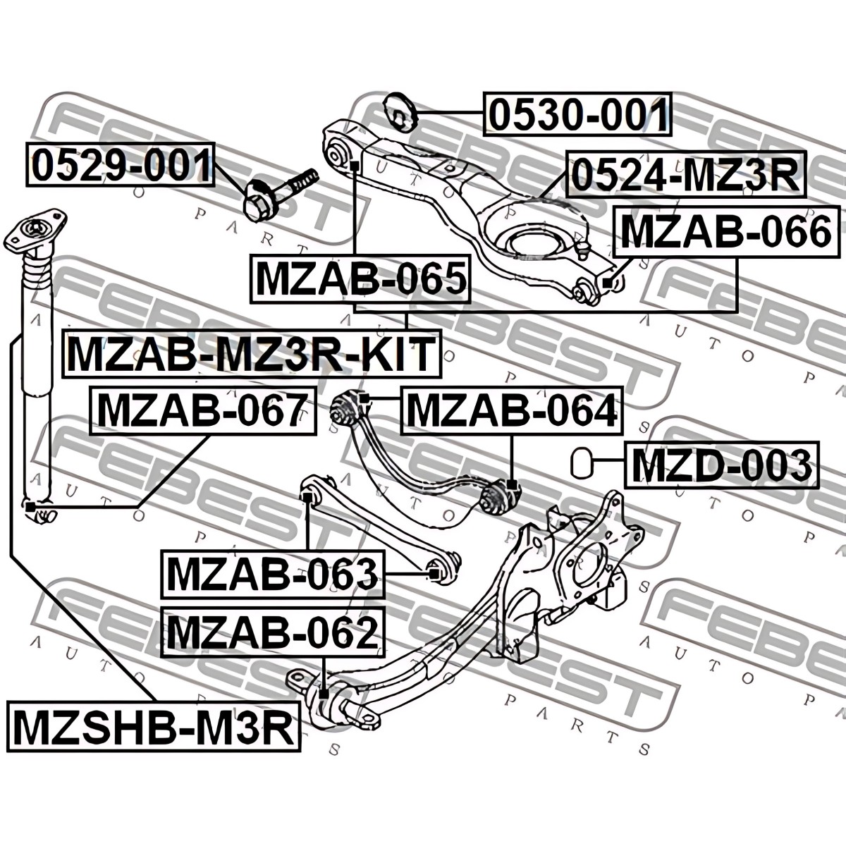 MZAB-063 Сайлентблок важеля HYUNDAI ELANTRA, LIA MAGENTIS 00- задн. міст із двох сторін (Вир-во FEBEST) фото від Мотор-Агро Харк