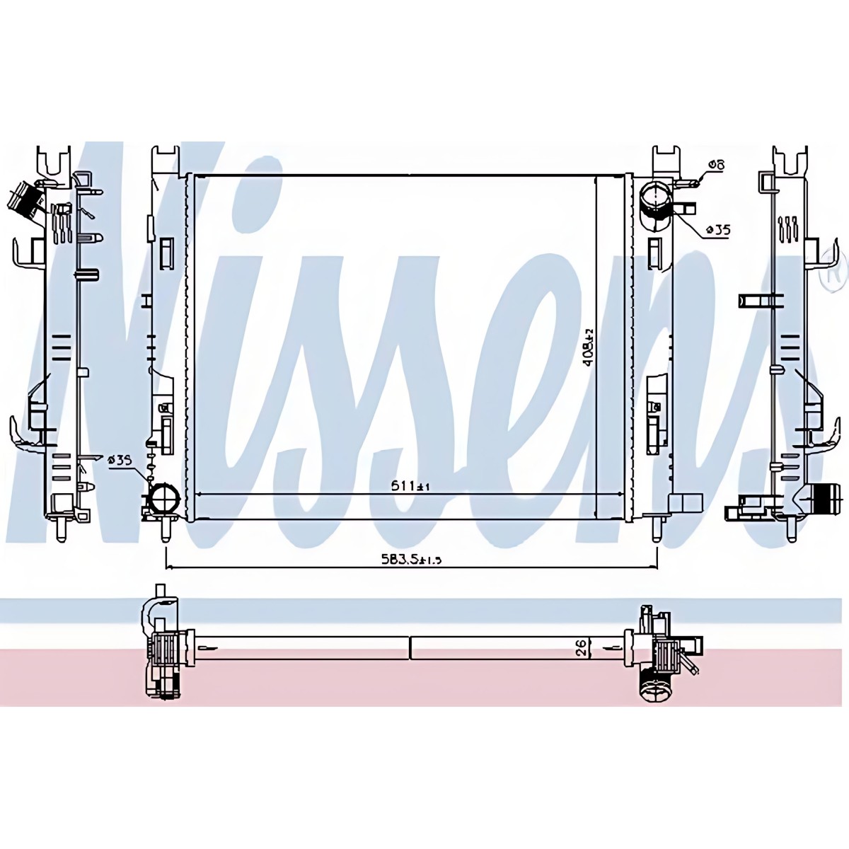 66131029271 Радіатор охолодження RENAULT DUSTER (10-)/LODGY (12-) (вир-во Nissens) 637624 купити у інтернет-магазині МОТОР-АГРО
