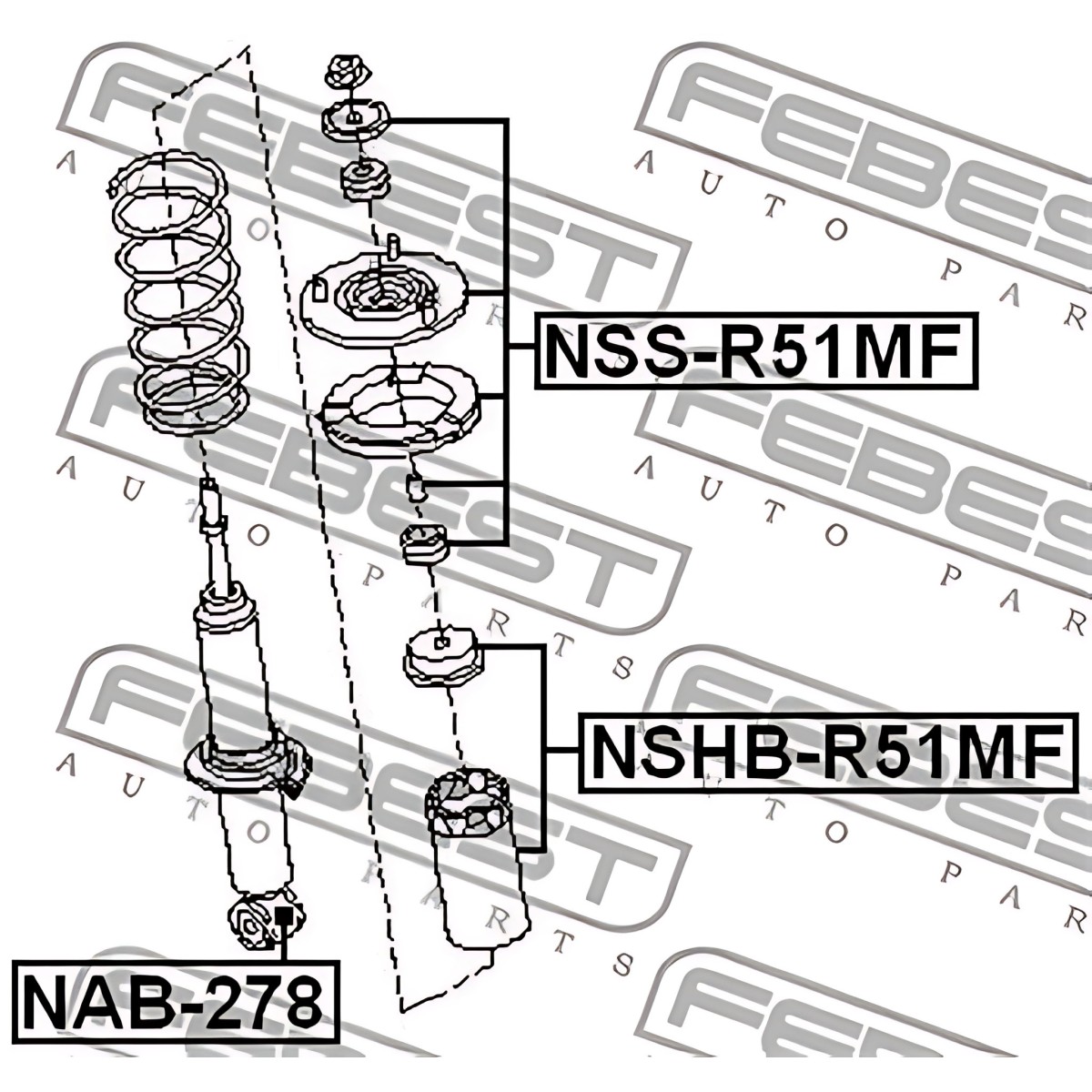 NAB-278 Сайлентблок амортизатора NISSAN PATHFINDER 05-перед. міст (Вир-во FEBEST) фото від Мотор-Агро Харків Україна