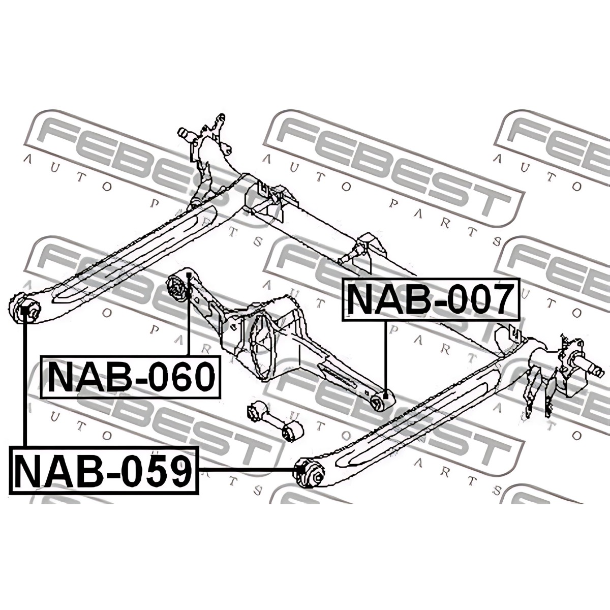 6900949554 Сайлентблок балки NISSAN ALMERA 00- задн. міст (Вир-во FEBEST) NAB-059 купити у інтернет-магазині МОТОР-АГРО
