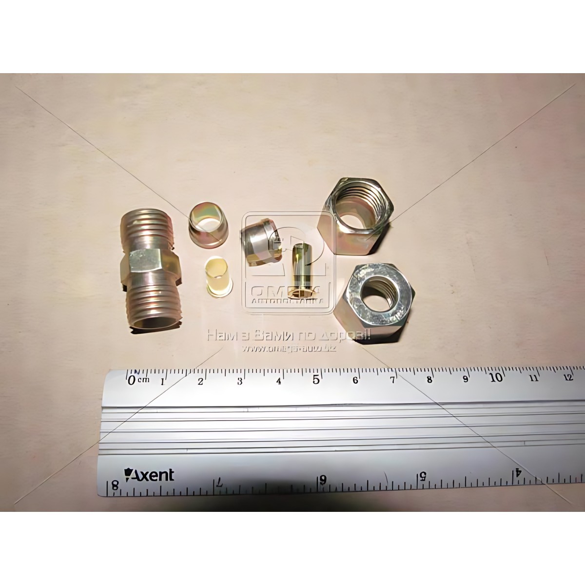 штуцер із зовнішнім різьбленням, дві відповідні накидні гайки,