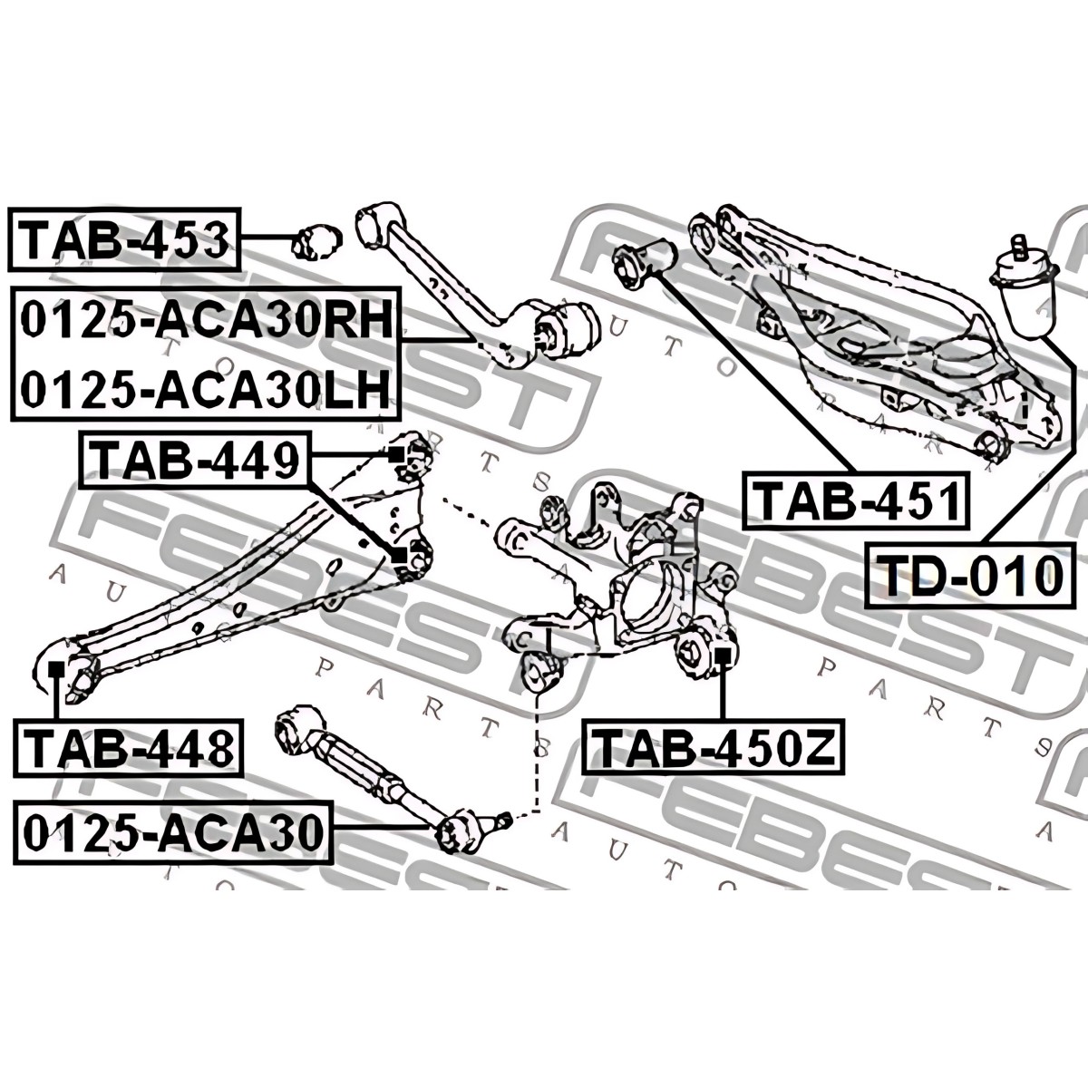 6900956520 Сайлентблок важеля TOYOTA AURIS, AVENSIS, LEXUS NX 08 - задн. міст із двох сторін (Вир-во FEBEST) TAB-451 купити у інтернет-магазині МОТОР-АГРО