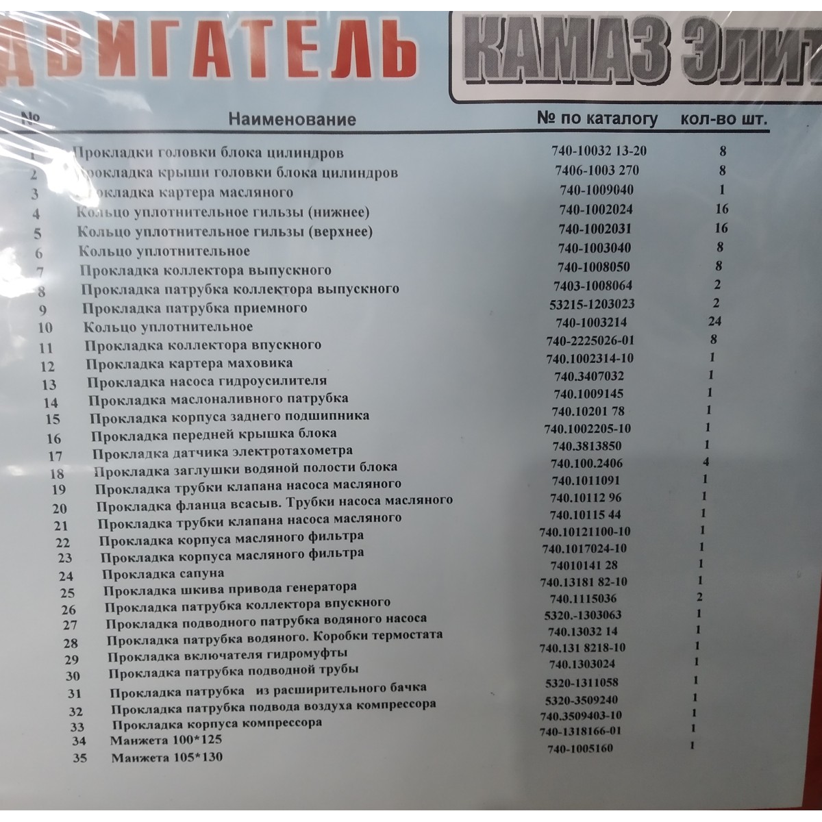 Комплект прокладок КАМАЗ (повний) (Еліт) (35 - поз) (пароніт 0,6-0,8 мм) 740-1002035-Ел у інтернет-магазині МОТОР-АГРО