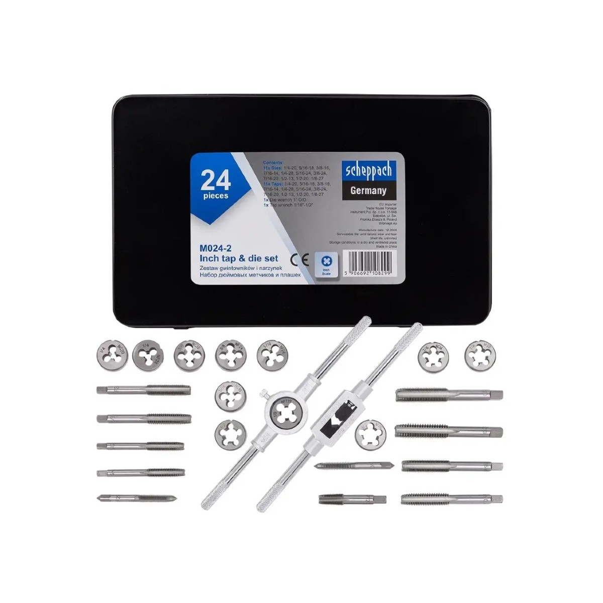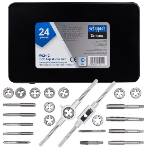 Набір дюймових мітчиків та плашок 24 пр. в металевому кейсі Scheppach SCH-M024-2