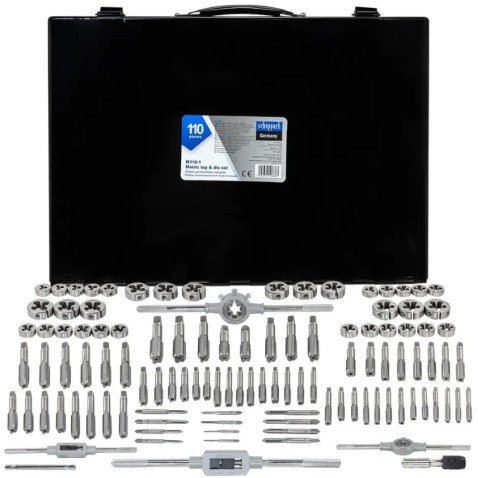 Набір мітчиків та плашок SCHEPPACH SCH-M110-1 — це професійний комплект з 110 предметів, призначений для нарізання та відновлення метричної різьби в діапазоні від М2 до М18. Він ідеально підходить для використання в різних сферах, де потрібна робота з різьбовими з'єднаннями.