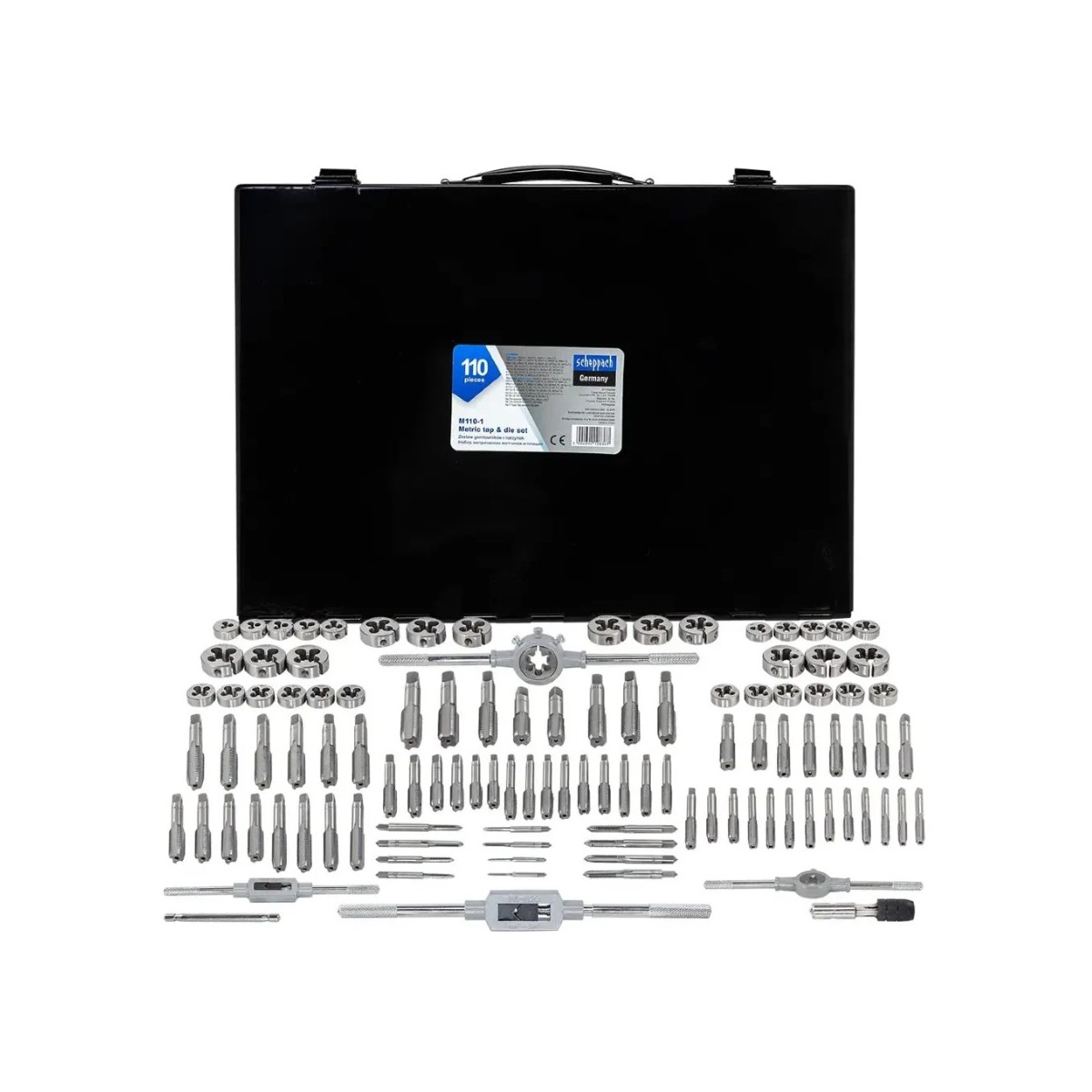 Набір метричних мітчиків та плашок 110 пр.(М2-М18) в металевому кейсі Scheppach SCH-M110-1 64898 у інтернет-магазині МОТОР-АГРО