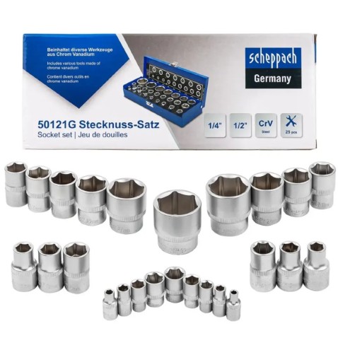 Набір головок в металевому кейсі 25 пр. 1/2'', 1/4'' (6-гр.) Scheppach SCH-50121G