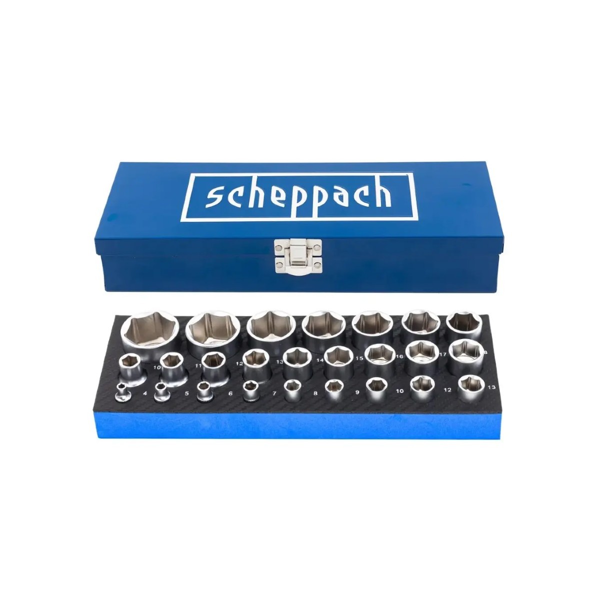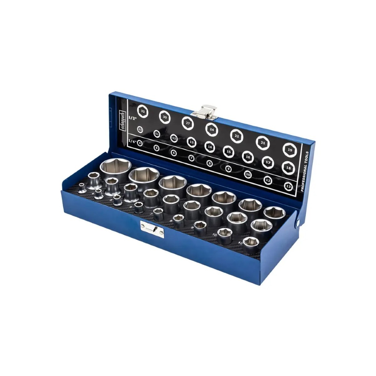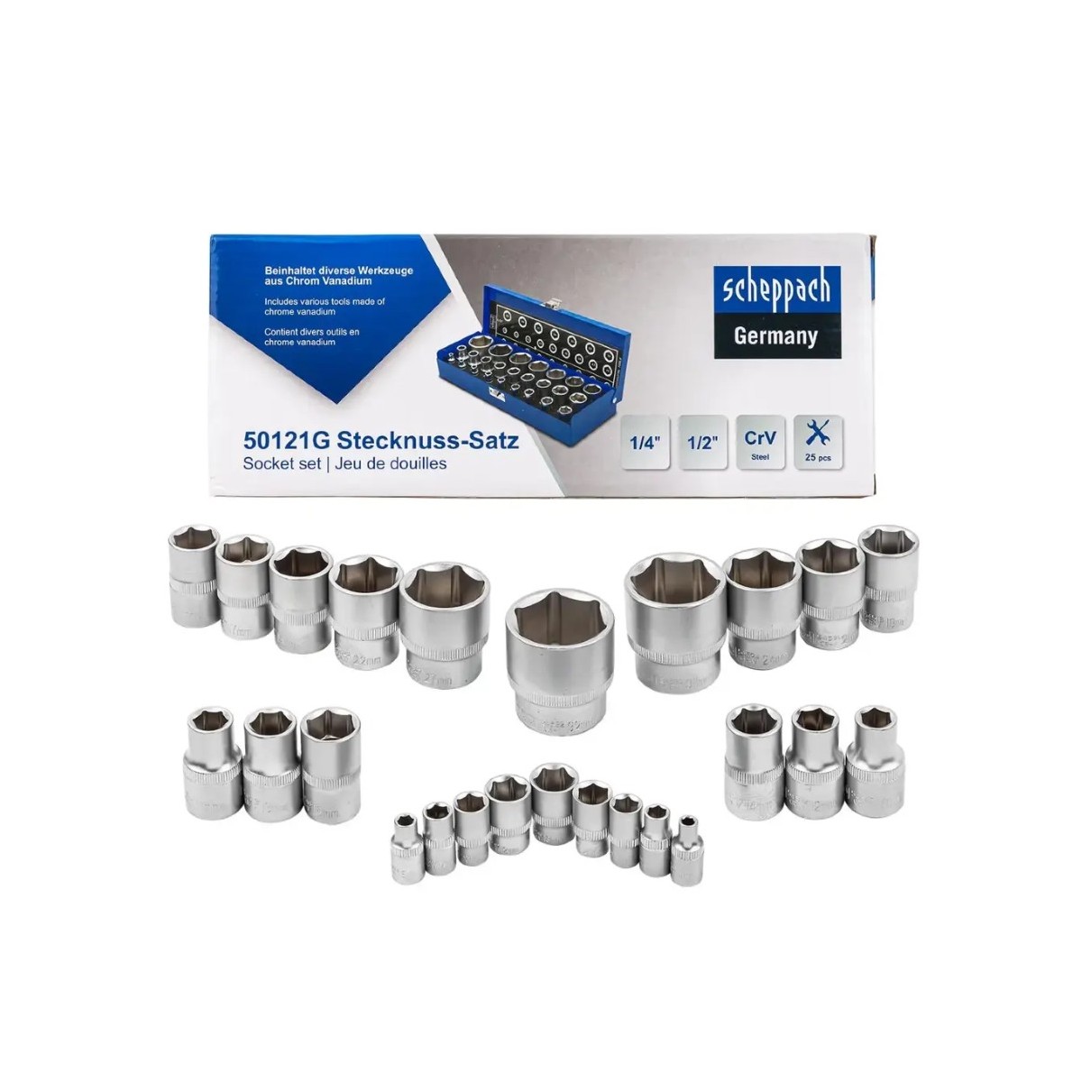 Набір головок в металевому кейсі 25 пр. 1/2'', 1/4'' (6-гр.) Scheppach SCH-50121G 60020 у інтернет-магазині МОТОР-АГРО