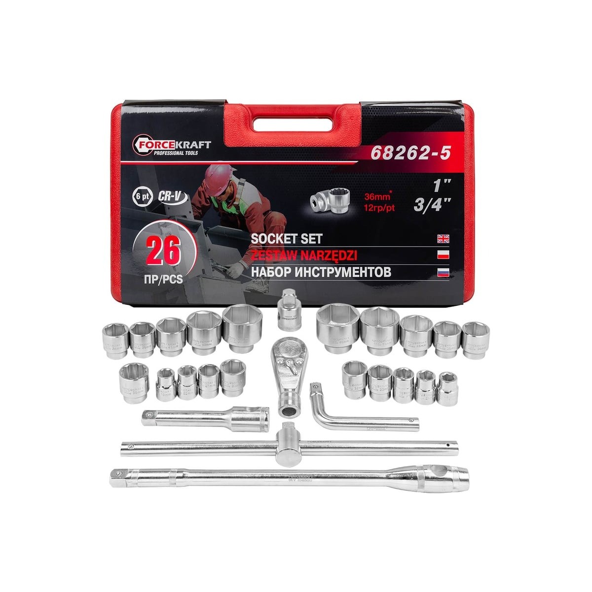 Набір інструментів 26 пр. (6-гр.) 3/4" (17-50 мм) 1" (55-65 мм) FORCEKRAFT FK-68262-5