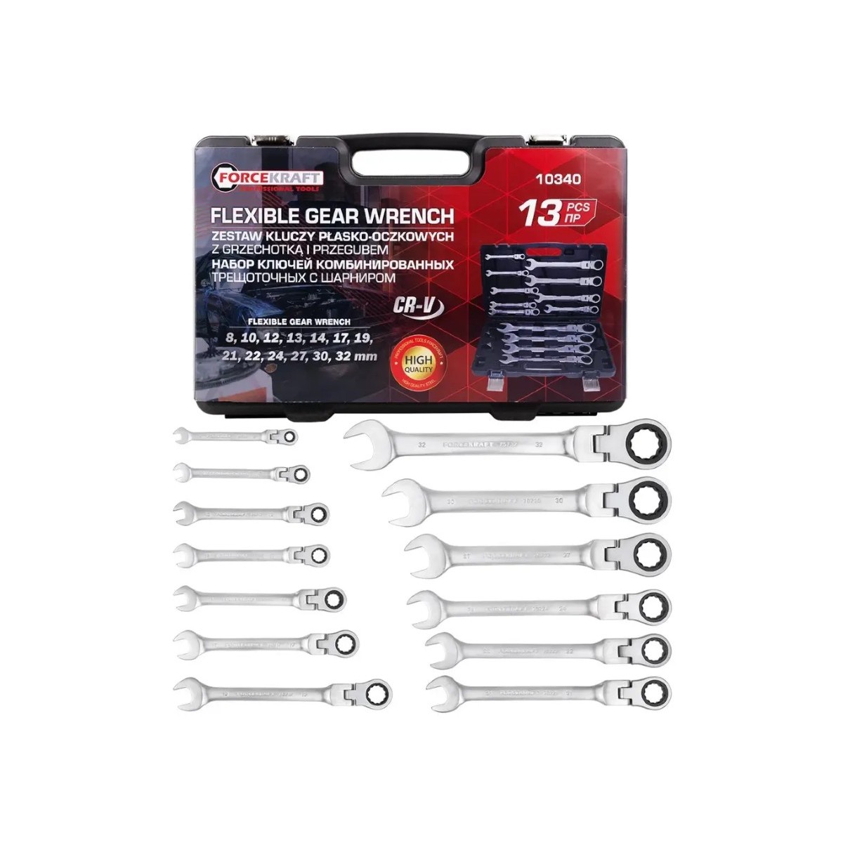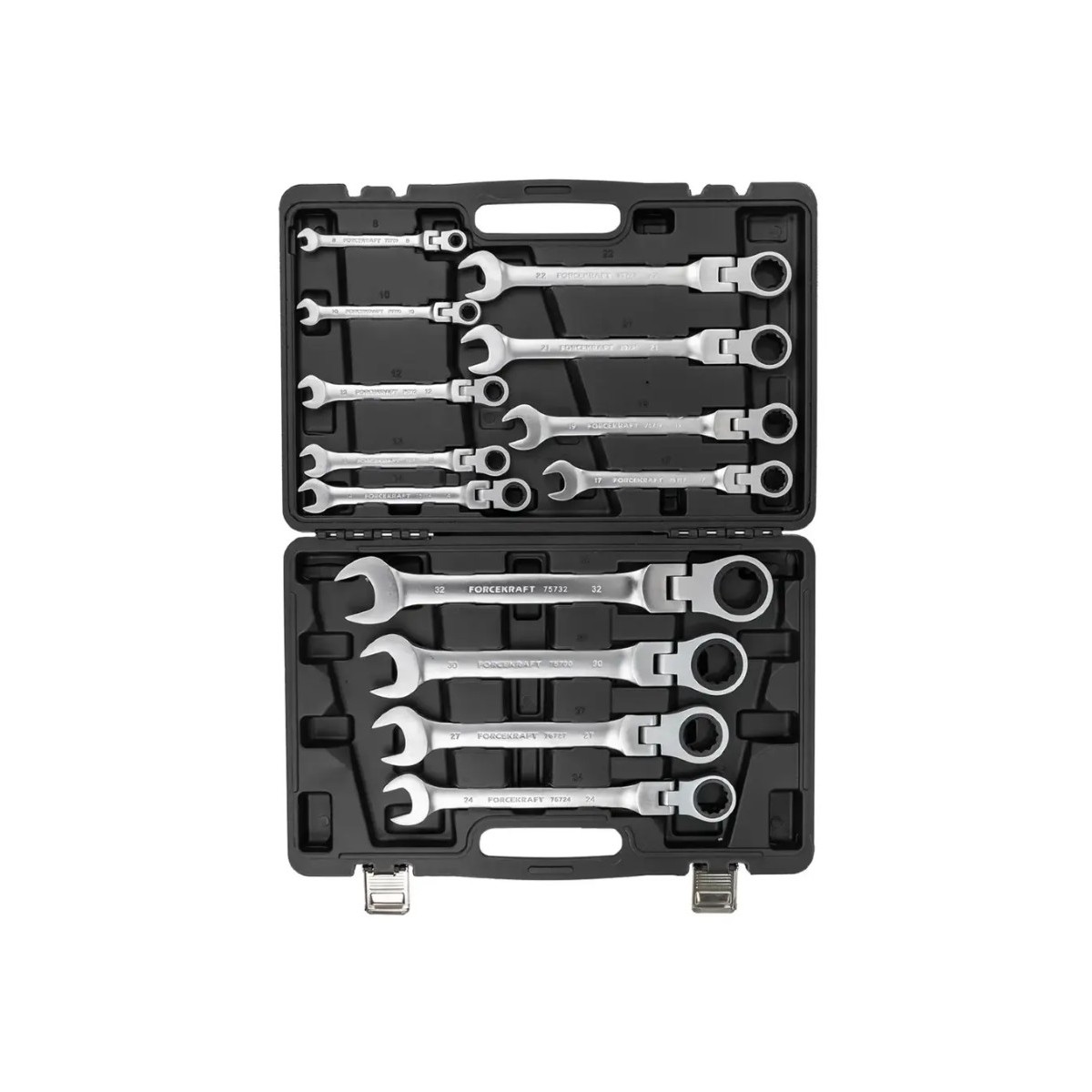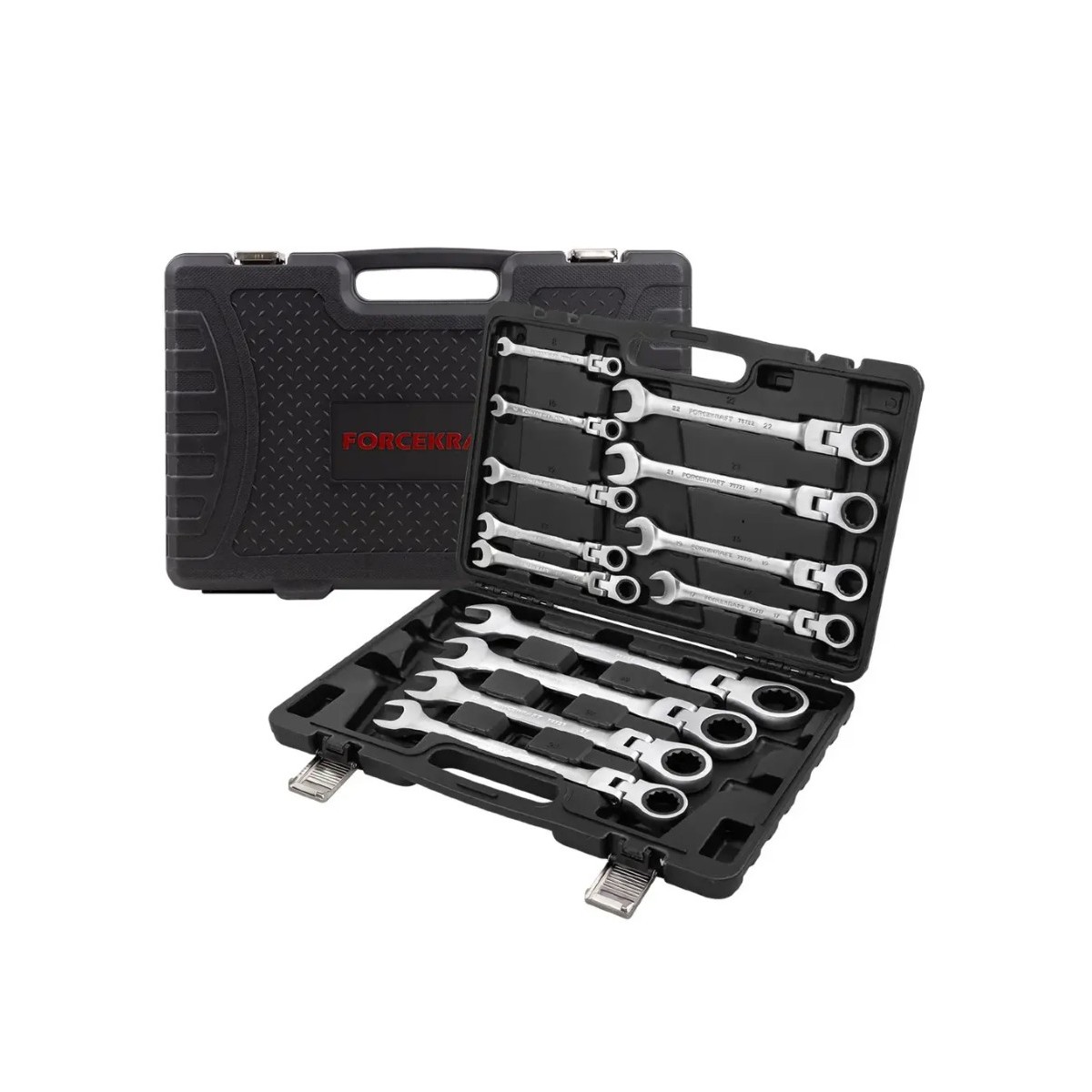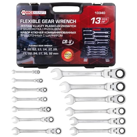 Набір комбінованих ключів з тріскачкою та шарніром 13 пр. в кейсі (8-32 мм) FORCEKRAFT FK-10340