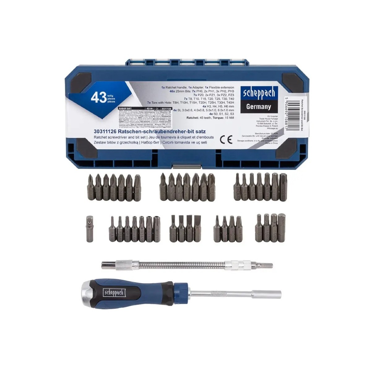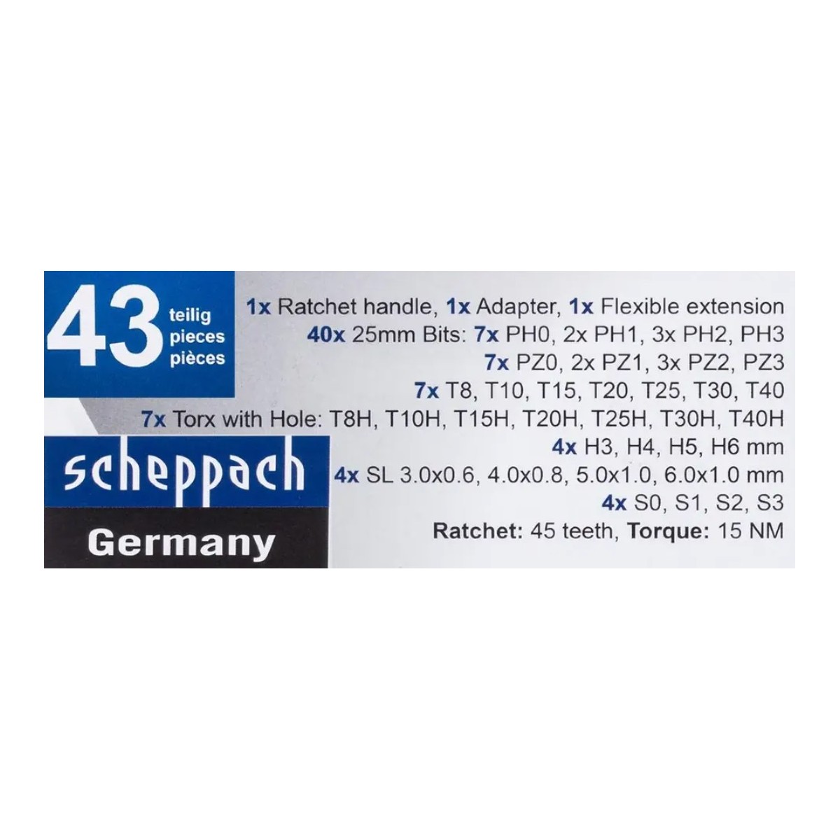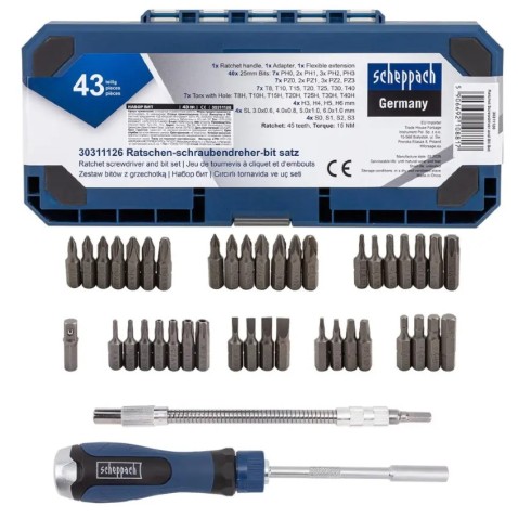 Викрутка-тріскачка з набором біт 43 пр. Scheppach SCH-30311126 65802 у інтернет-магазині МОТОР-АГРО